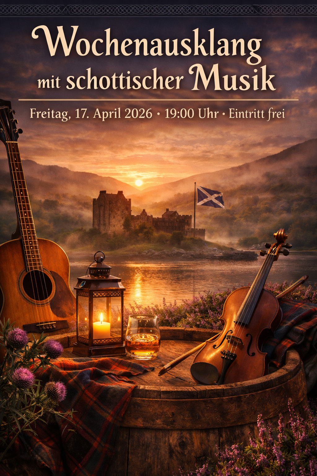 Am Freitag, 17. April, lädt Casa Musica Forst wieder zum Wochenausklang ein – diesmal mit schottischer Musik, die Atmosphäre, Fernweh und Vorfreude zugleich weckt.